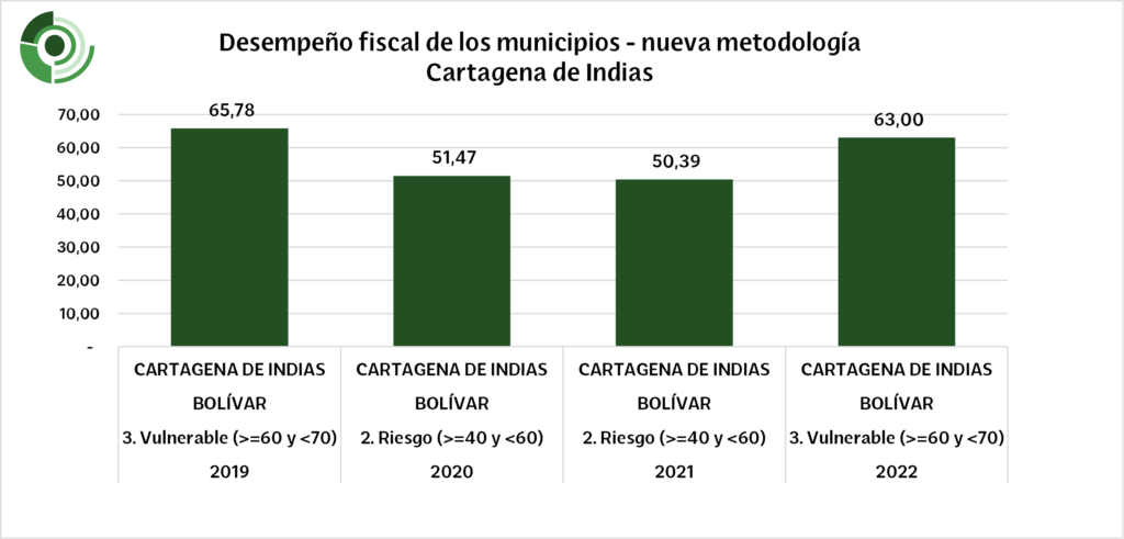 Para el año 2019, la ciudad mostró una notable resiliencia al ubicarse en la categoría ‘Vulnerable‘ con un índice de 65.78. Este período marcó una etapa en la que Cartagena demostró su fortaleza frente a los desafíos económicos de la época. Sin embargo, la llegada de la pandemia del COVID-19 desencadenó desafíos económicos globales que también se reflejaron en la ciudad. Registrando un descenso a 51.47 en 2020 y 50.39 en 2021, la ciudad de Cartagena se vio afectada por complicados desafíos financieros. El año 2022 trajo consigo una mejora, elevando el índice a 63.00 y regresando al rango de ‘Vulnerable‘.