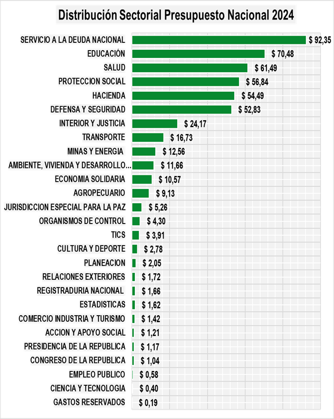 Siguiendo las directrices del Ministerio de Hacienda, los recursos del presupuesto se asignan a diferentes sectores, cada uno compuesto por entidades del Estado relacionadas con dicho sector. Sin embargo, al observar los rubros, puede parecer que no proporcionan una visión completa. Aquí es donde debemos profundizar y analizar las variaciones que experimentará cada sector y cómo se alinean con las políticas macroeconómicas del gobierno de Gustavo Petro.