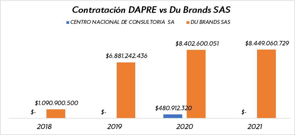 A pocos días de terminar el periodo presidencial, y de acuerdo a la información contable y financiera solicitada por nuestra veeduría ciudadana al Departamento Administrativo de la Presidencia de la Republica (DAPRE), nos permitimos comunicar a la ciudadanía, que la suma de todas las transacciones realizadas entre el DAPRE y la empresa Du brands SAS durante el periodo 2018-2021 (contrataciones entregadas a dedo para posible pago de favores políticos), para posicionar la imagen paupérrima del mandatario en redes sociales (entre otros), ascendió a la suma de 24.823.803.715 COP (USD 6.205.000 aprox):